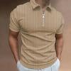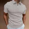 Men Striped Golf Shirt with Quarter Zipper Lapel Casual Holiday Short Sleeved T-shirt Fashionable Basic Style Regular Fit Shirt