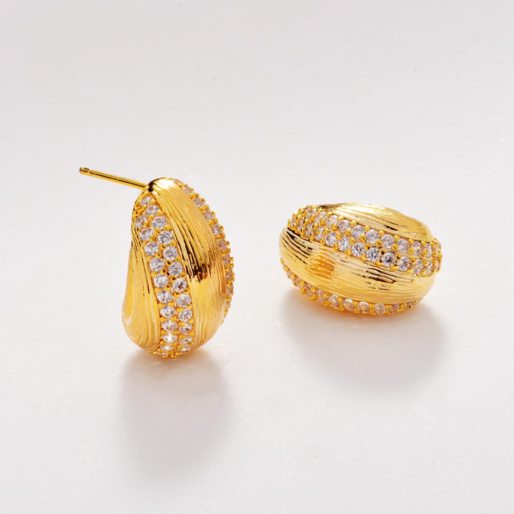 2026 Korean Fashion Collection: Elegant Striped Zircon Stud Earrings - Brushed Teardrop Light Luxury Jewelry