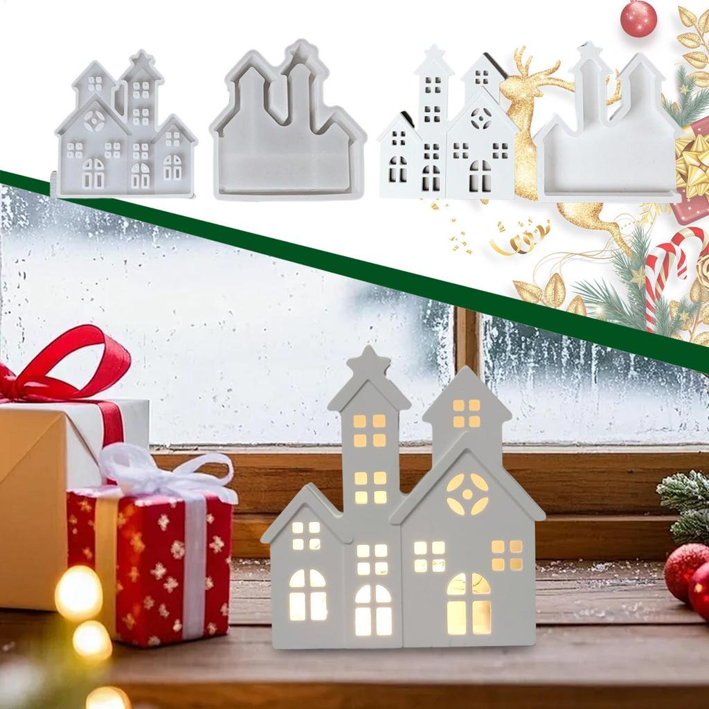 Christmas Silicone Molds Non-Stick Christmas House Table Centerpieces 1 Pair Building Shape Casting Mold For Chocolate Wax