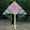 Jeder Drachen wird sorgfältig mit traditionellen manuellen Techniken gefertigt, und jeder Drachen ist ein Kunstwerk für sich.. Der Drachen ist ein dreieckiger Drachen mit einem einzigartigen und auffälligen Design, das am Himmel hervorstechen wird.. Das Gestell des Drachens besteht aus hochwertigen Fiberglasstäben, die Stabilität und Flugleichtigkeit gewährleisten.