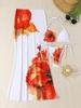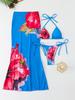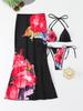 2026 European & American Women's Printed Long Skirt Split Bikini Three-Piece Swimsuit