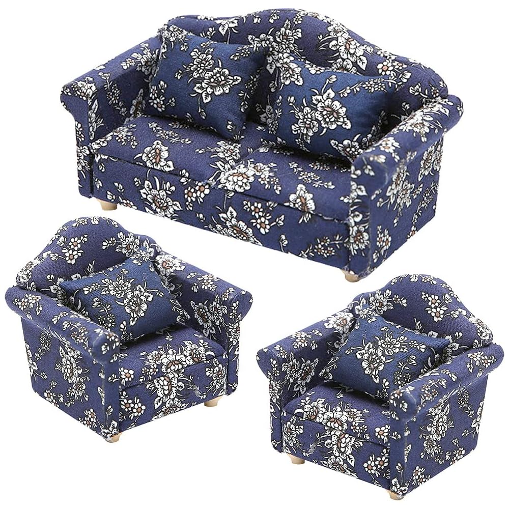 Moin Moin Miniature 1/12 Scale Furniture Sofa Set 3 Pieces White Floral Fabric Dollhouse Accessories