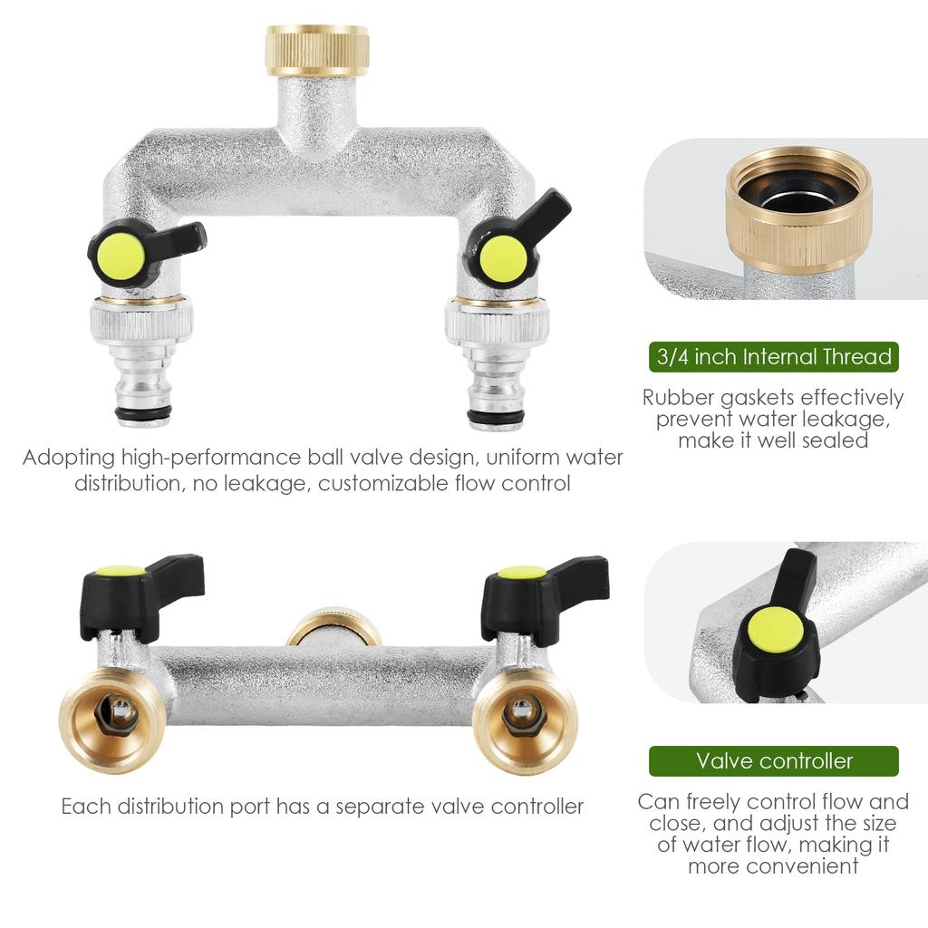 3/4 Zoll 2/3-Wege Zinklegierung Gartenschlauchverteiler Robuster Schlauchhahn Bewässerungsverbinder Verteiler für Außenhahn