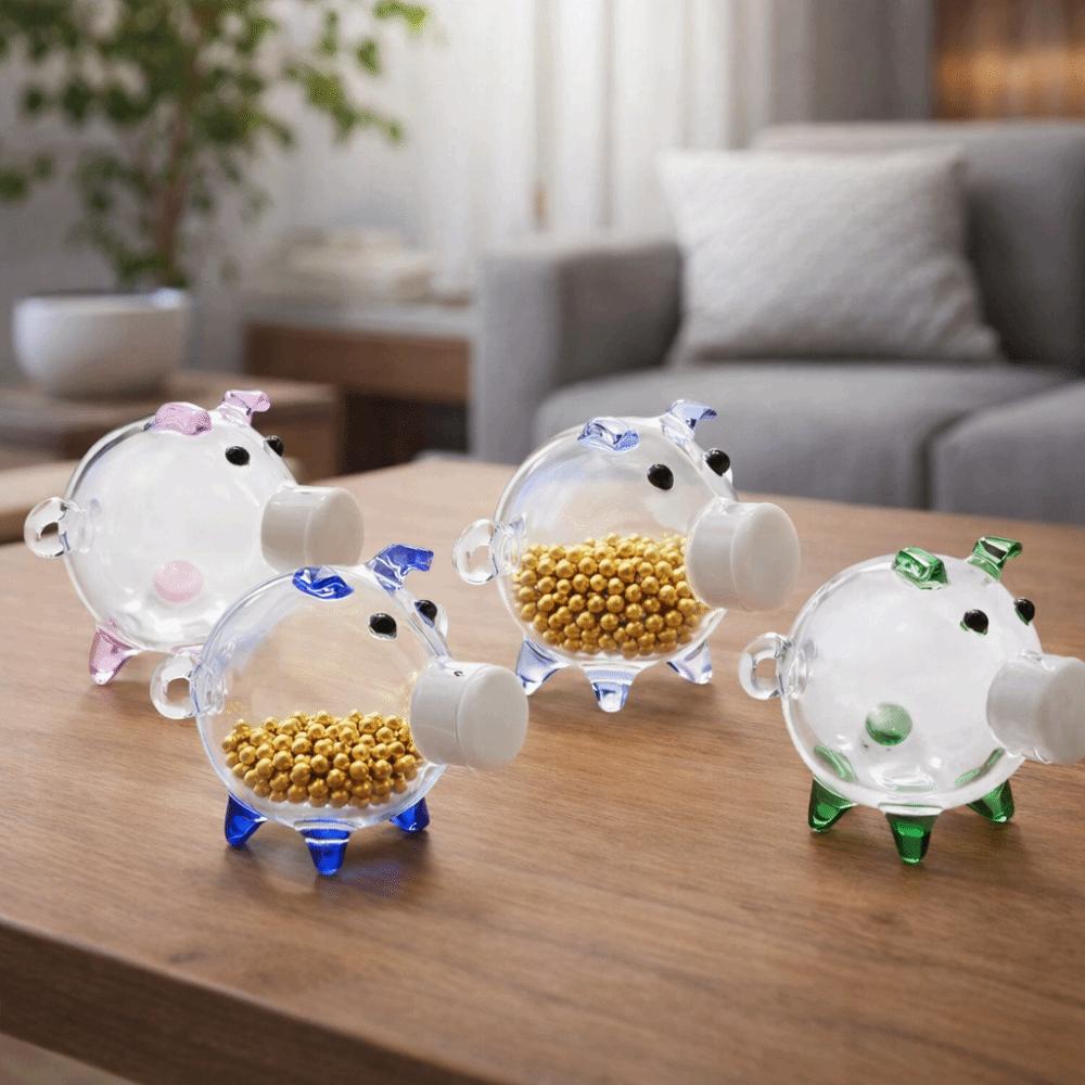 Transparent Pig Shape Piggy Bank Visible Coins Saving Box Cute Golden Beans Container Desktop Use