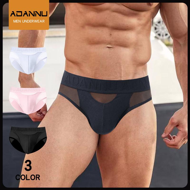 Herren Plus Size Low-Rise Baumwoll-Slip mit Gewinde und 3D-Beutel - Einfarbige Patchwork-Sportunterwäsche