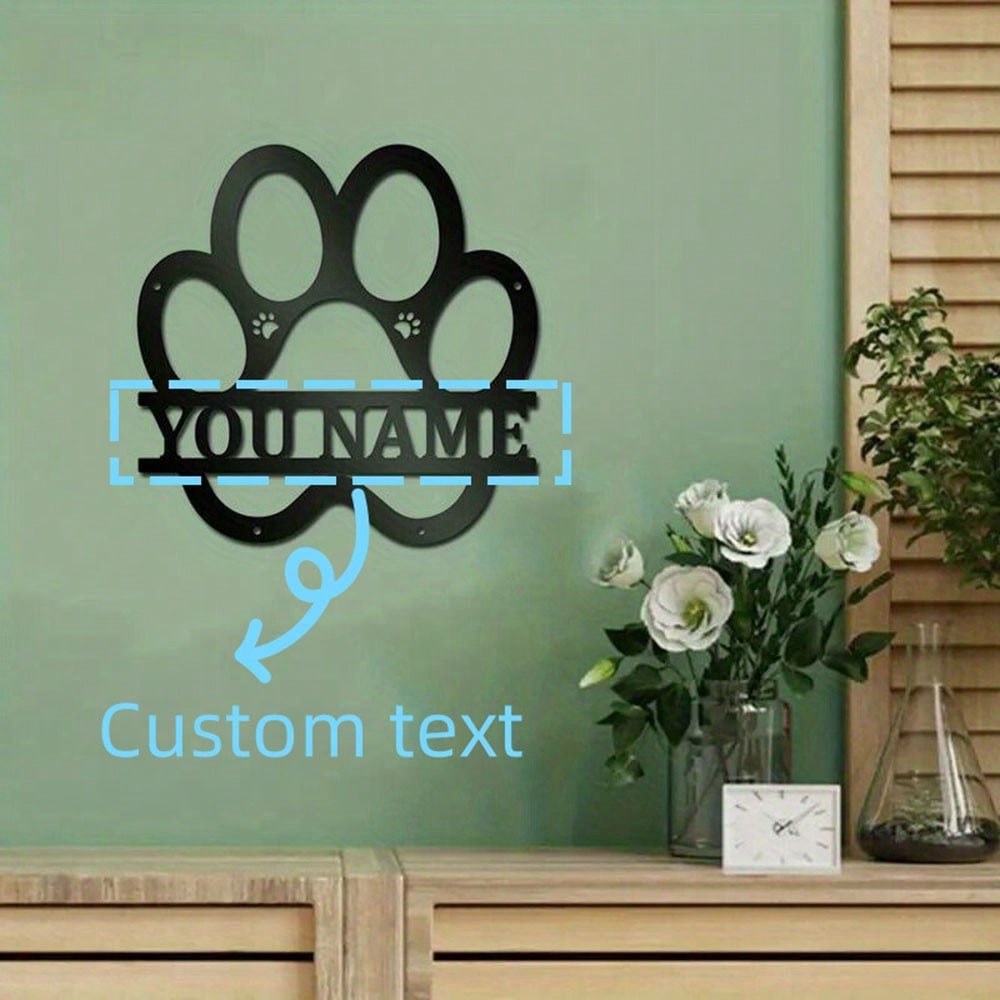 Benutzerdefinierte Hundename Schild Wandkunst Metall Pfotenabdruck Dekor für Tierliebhaber Einzigartiges Geschenk