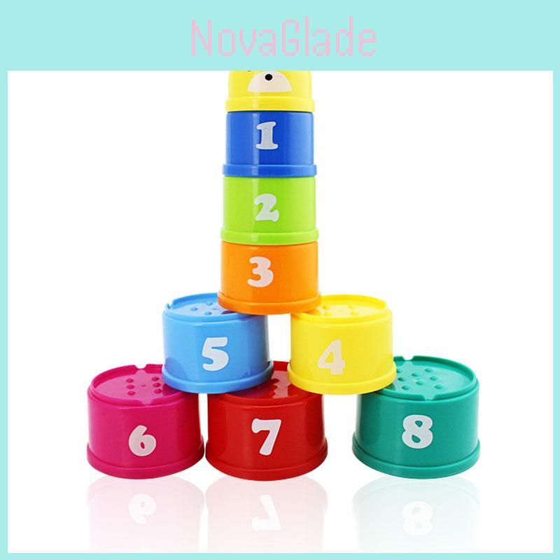 Lebendige und bunte 9-teilige Stapelbecher Badezimmer-Spielzeug Stapelset für kreatives Spielen