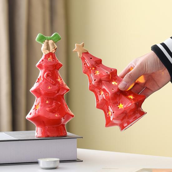 Keramik Weihnachtsbaum Nachtlicht Leuchtende Dekorative Lampe mit Sternspitze Weihnachtsbaum Figuren für Feiertags-Heimdeko