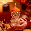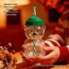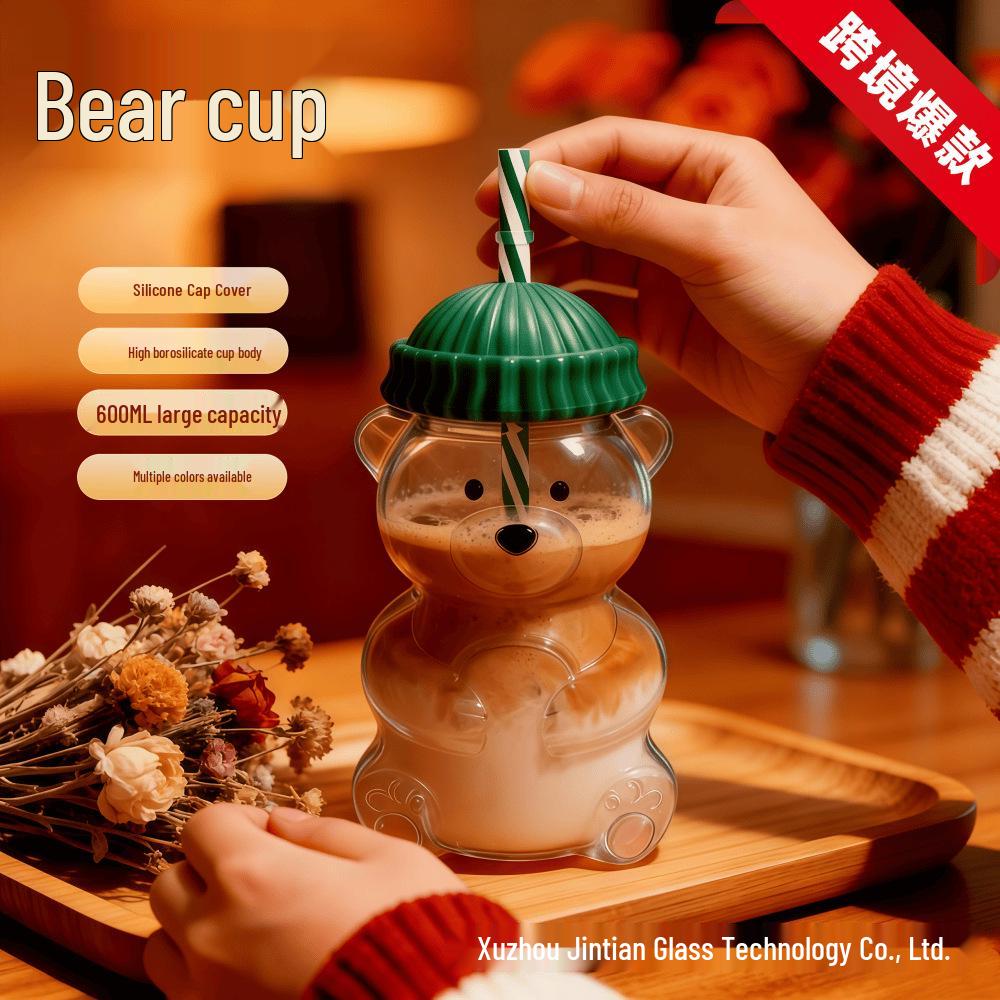 Hitzebeständiger Cartoon-Bären-Glasbecher mit Strohhalm - Süßes Borosilikatglas für Frauen