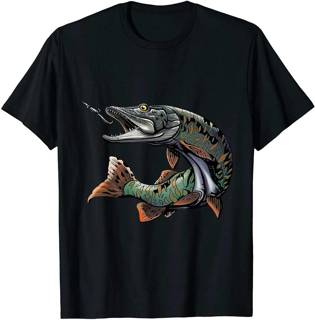 Moschusiger Hecht Angler Angler Angeln T-Shirt 100% Baumwolle Rundhals Sommer Kurzarm Lässig Herren T-Shirt Größe S3XL