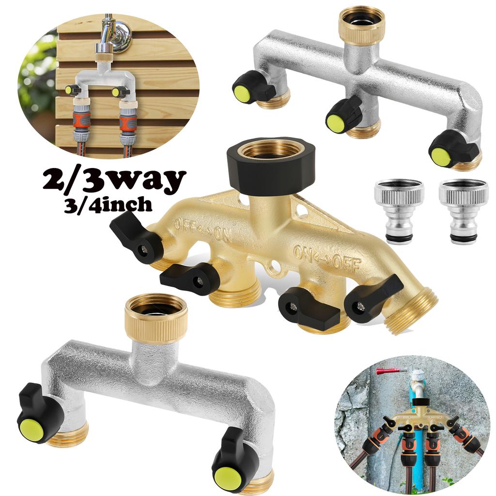 2/3/4-Wege-Verteiler für Leitungswasser, Hochleistungs-Messing-Gartenschlauch-Verteiler, 3/4-Zoll-Wasseranschlussverteiler für Zuhause, Hof/Wasch
