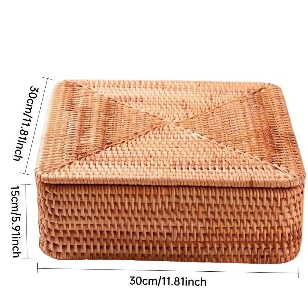 Handgeflochtene Rattan-Aufbewahrungsbox – Quadratischer Tisch-Organizer mit 4 Fächern für Snacks, Nüsse und Haushaltsartikel