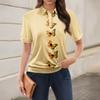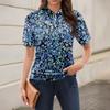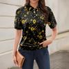 Damen-T-Shirt mit lässigem Blumendruck, V-Ausschnitt, kurzen Ärmeln und dekorativen Knöpfen
