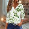 Damenmode Lässiges T-Shirt mit Blumendruck, V-Ausschnitt, dekorativen Knöpfen und Dreiviertelärmeln