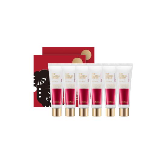 Centellian24 Derma Madeca Cream Happy Tiger Edition is a limited-edition intensive repair moisturizer formulated with TECA (Centella Asiatica extract complex) to improve skin elasticity, hydration, and overall skin tone. This high-performance cream helps reduce the appearance of wrinkles and dark spots while strengthening the skin barrier. The rich yet smooth texture deeply nourishes and soothes the skin, leaving it soft, radiant, and revitalized. This value set includes 2 boxes (total 6 creams), ideal for long-term skincare use.