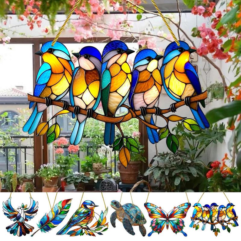 Bemalter Vogel Sonnenfänger zum Aufhängen am Fenster Niedlicher Vogel Sonnenfänger Heimdekoration 2D Acryl Vogel Ornament für Vogelliebhaber