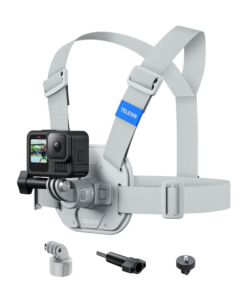 TELESIN Chest Mount, Enhanced Edition for GoPro, POV Mount with Adjustable Chest Strap for Quick Attach and Detach Action Cameras, Compatible with GoPro Hero 13, 12, 11, 10, 9, Insta360 X5, X4, X3, X2, DJI Osmo 360, Action 5, Pro 4, 3, Ace Pro, and AKASO, Fashion Gray