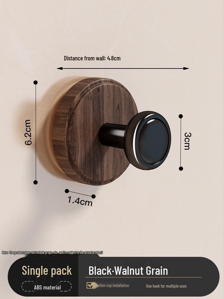 Beech Wood Suction Cup Hook, Punch-Free Vacuum Adhesion for Bathroom, Toilet, Clothes, or Hats
