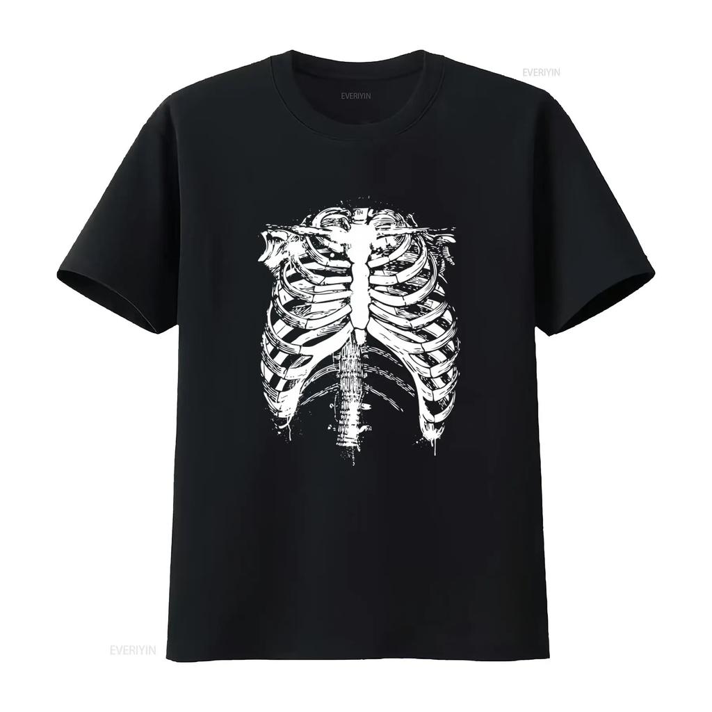 Herren Schwarzes Rippenkorb Skelett Halloween T-Shirt Gruselig Lustiger Kostüm Aufdruck Größen S bis XXXL vintage Gewaschen Mann Mode