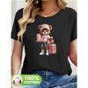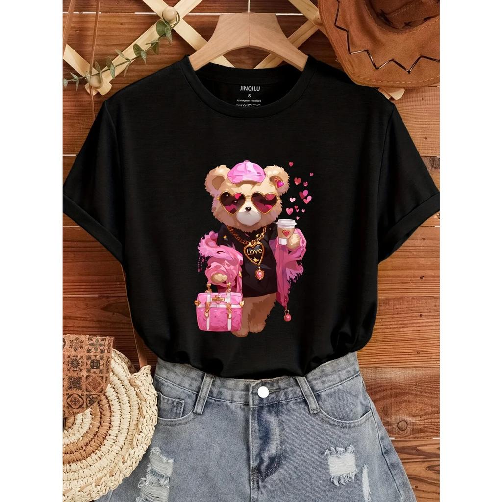 Bear & Love Print T-Shirt, Casual Crew Neck Short Sleeve Top For Spring & Summer, Women's Clothing t shirts