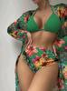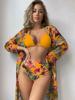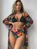 New swimsuit bikini long-sleeved blouse sexy tight-fitting printed split bikini three-piece set