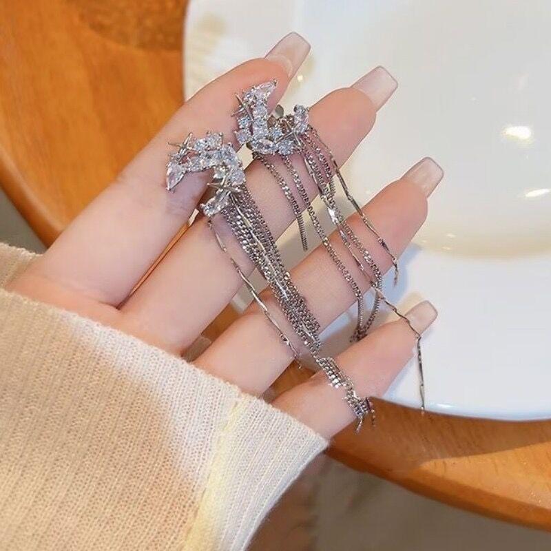 Monduntergang, Sterne, Mondquasten, Ohrknochen-Clips, Elegante lange schlankmachende Ohrclips, Leichter Luxus, Hochwertiges Gefühl, Ohrringe ohne Ohrloch