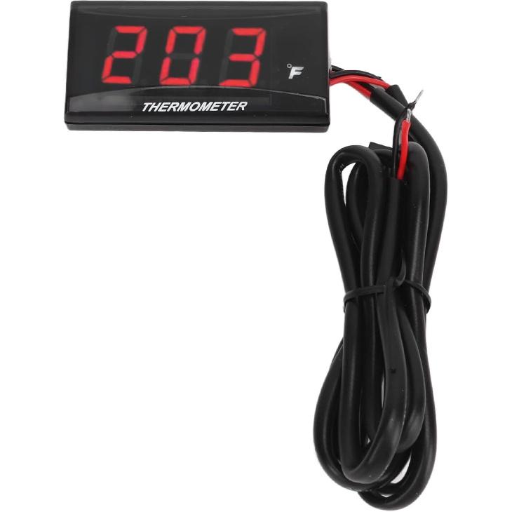 Motorcycle Digital Thermometer, DC 12V Ultra Thin Water Temperature Meter Gauge with 18mm Sensor Adapter and LCD Display, Digital Hygrometer Humidity
