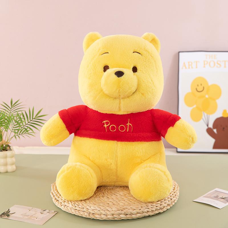 This Winnie The Pooh plush stuffed animal features a soft, short-pile fabric with a PP cotton fill, providing a cuddly and durable texture. Available in sizes from 40cm,50cm,60cm, it supports safe, gentle play. Ideal for children's bedrooms or playrooms, it offers a charming decor addition and comforting companion. Easy to clean with a gentle wipe ensures maintenance.