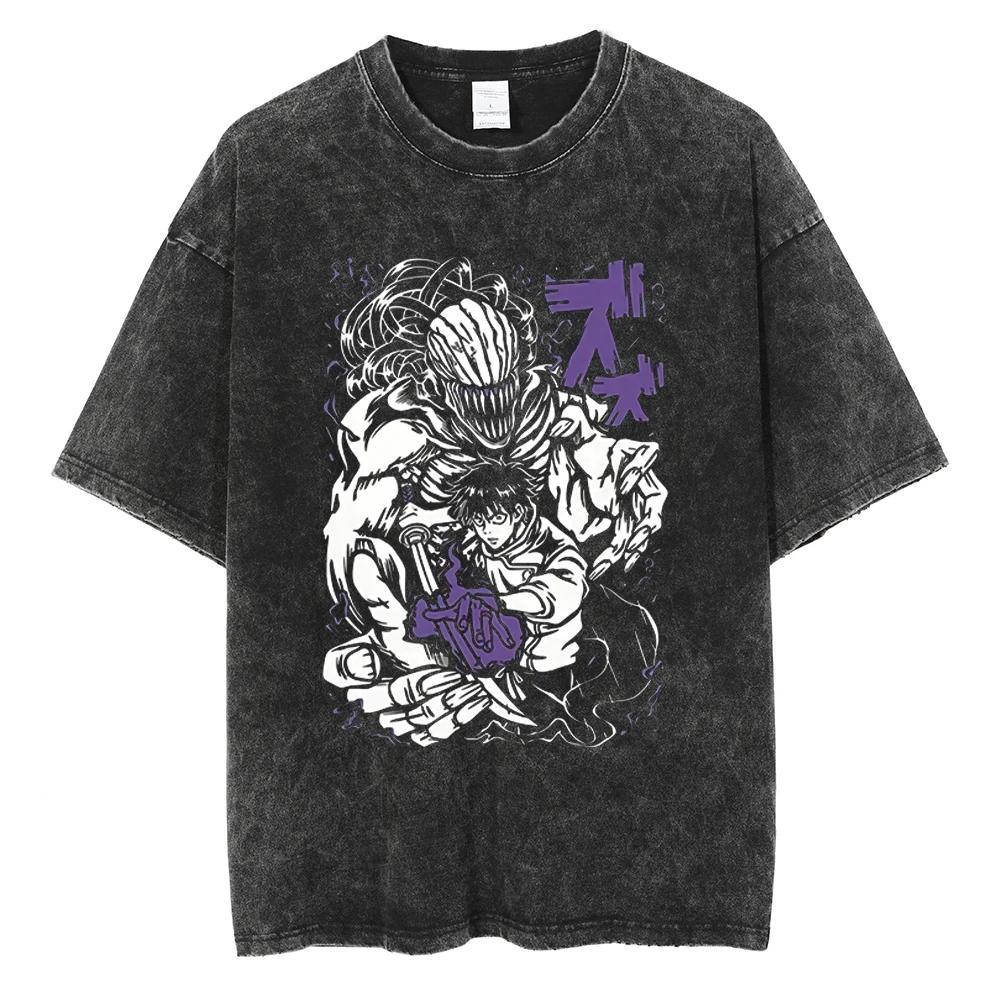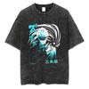 Anime Jujutsu Kaisen Gewaschenes T-Shirt Vintage Hip Hop Retro Baumwolle Herren Streetwear Übergroßes Damen Kurzarm Oberteil Y2k