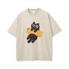 Herren T-Shirts im japanischen Stil Baumwolle Lustiges Klebeband Katzenaufdruck Kurzarm Gewaschene T-Shirts Herren Übergroß Rundhals Kleidung