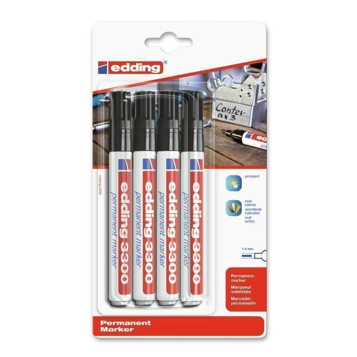 Marqueur - EDDING - 3300 - Pointe biseautée - Multicolore - Séchage rapide - 4 pièces