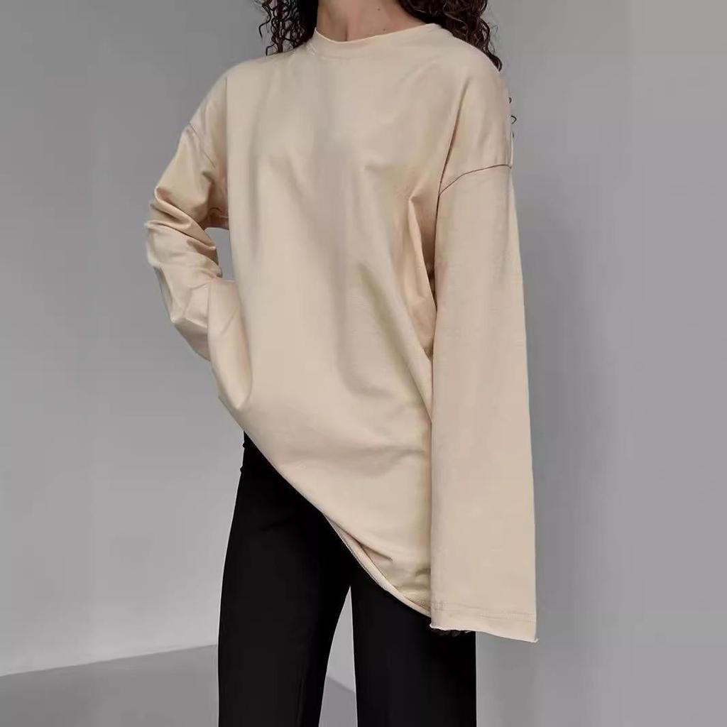 Frühling 2024 Damen reines Baumwoll-T-Shirt mit lockerem Schnitt und langen Ärmeln - GUIYAKECOOL