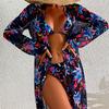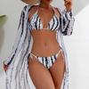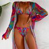 Sexy bikini three-piece gauze skirt swimsuit bikini mesh print swimsuit vacation seaside woman