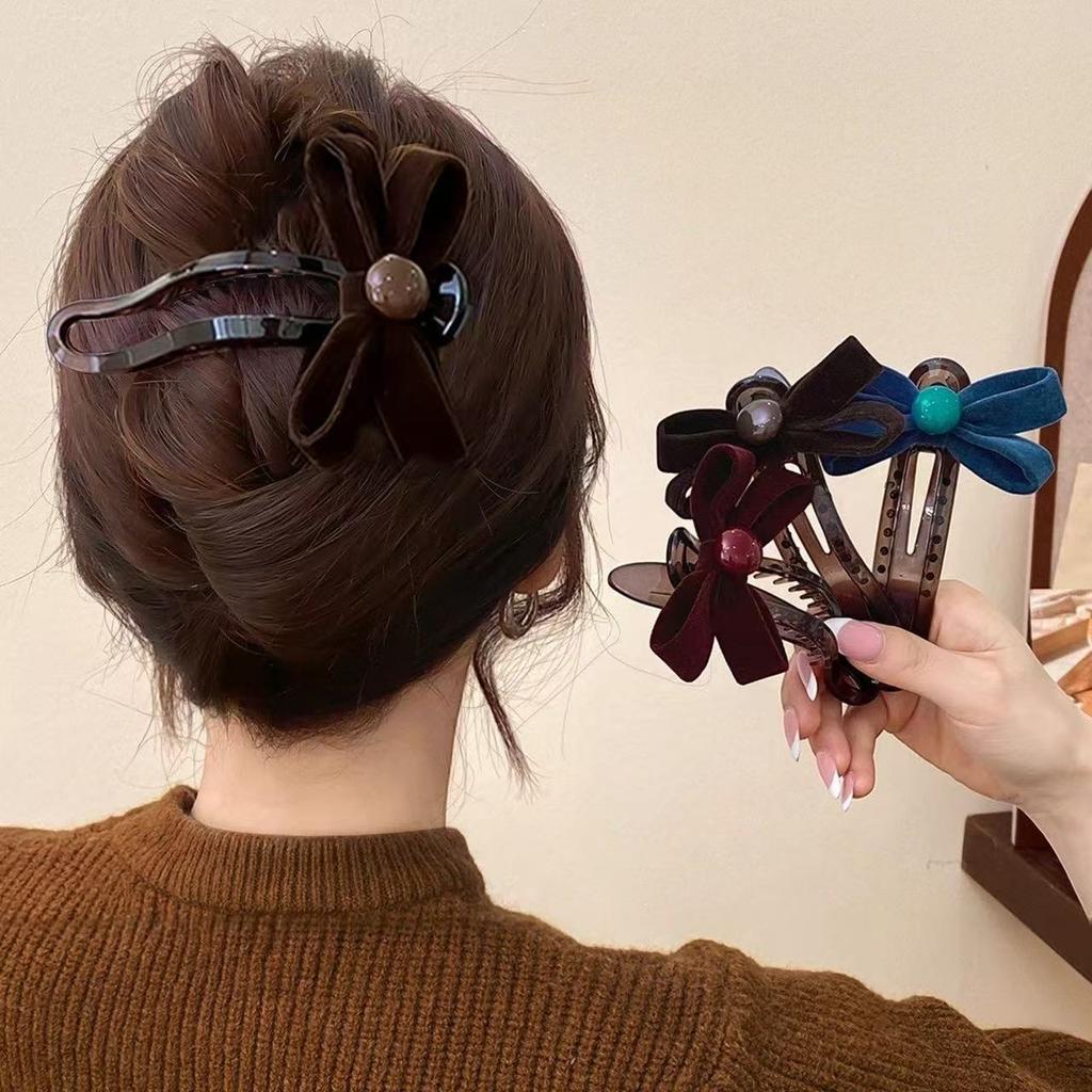Sweet velvet bow duckbill clip hair clip women's back of the head plate hair clip headpiece 2025 new hair clip!