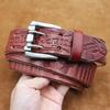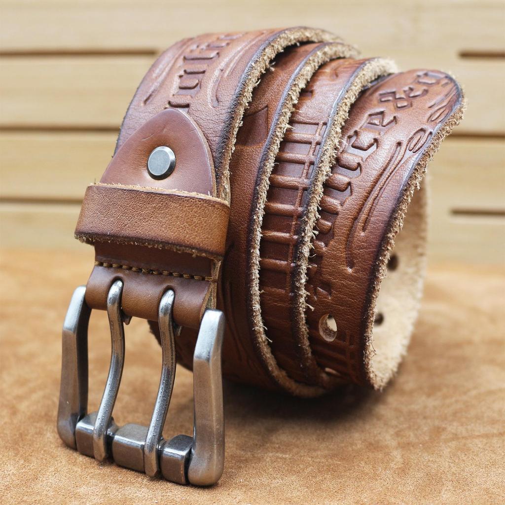 Herren Verdickter Ledergürtel mit doppelter Dornschließe - Echtes geprägtes Rindsleder, Retro Casual Stil für Jeans