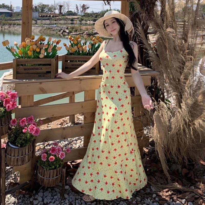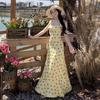 Erleben Sie zeitlose Eleganz mit diesem bezaubernden Kleid, das ein fesselndes Retro-Muster in französischem Gelb mit Blumenmotiven aufweist.. Entworfen in einer schmeichelhaften Meerjungfrauen-Silhouette, schmiegt es sich anmutig an Ihre Kurven, bevor es für zusätzliches Drama und Raffinesse ausgestellt wird.. Gefertigt aus hochwertigem Polyester, ist dieses Maxikleid sowohl bequem als auch leicht und somit eine ideale Wahl für jeden Sommeranlass.