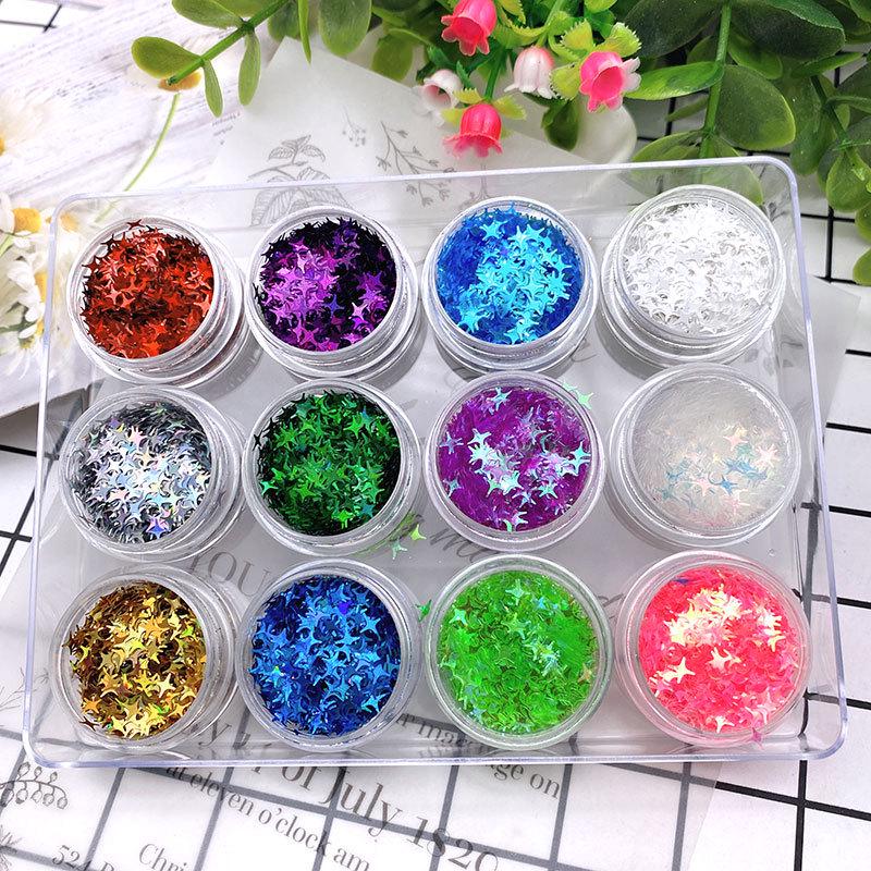 12-Farben Nail Art Glitzer Set: Rosen-, Blüten-, Herz- & Stern-Pailletten zur Handyhüllen-Dekoration