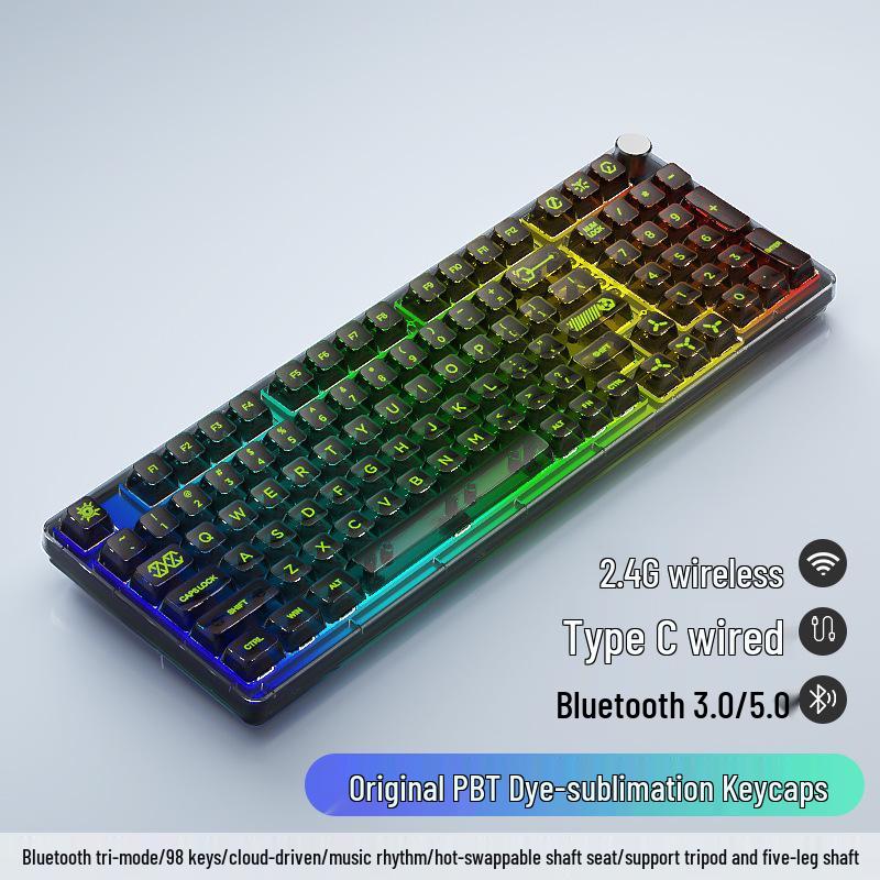 98-Key Wireless Bluetooth Three-Mode Mechanical Keyboard - Gaming, Esports, Office, PBT Transparent DIY Customization