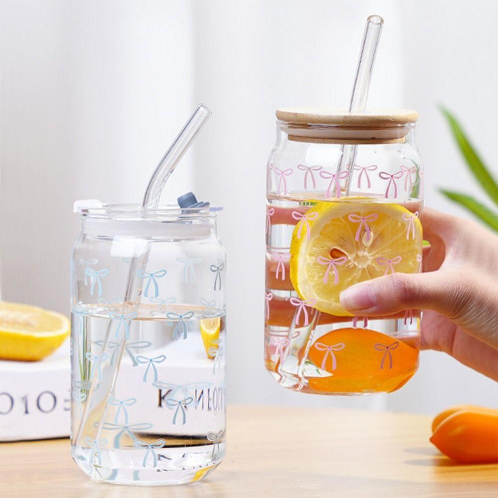 Stylish 500ML Bow Cups High Temperature Resistant With Lids Bowknot Glasses Glass Straw Cups for Drinking Milk
