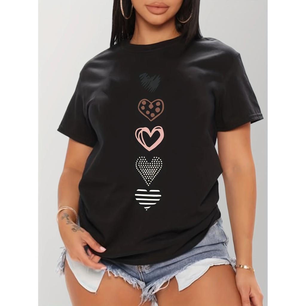 Übergrößen Freizeit-T-Shirt, Damen Übergröße mit Herz-Print, Kurzarm, Rundhals, Leicht dehnbar