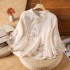 Literarisches Retro besticktes Baumwoll-Leinenhemd Sommer lässig Zen Tee Kleidung Hemd Top