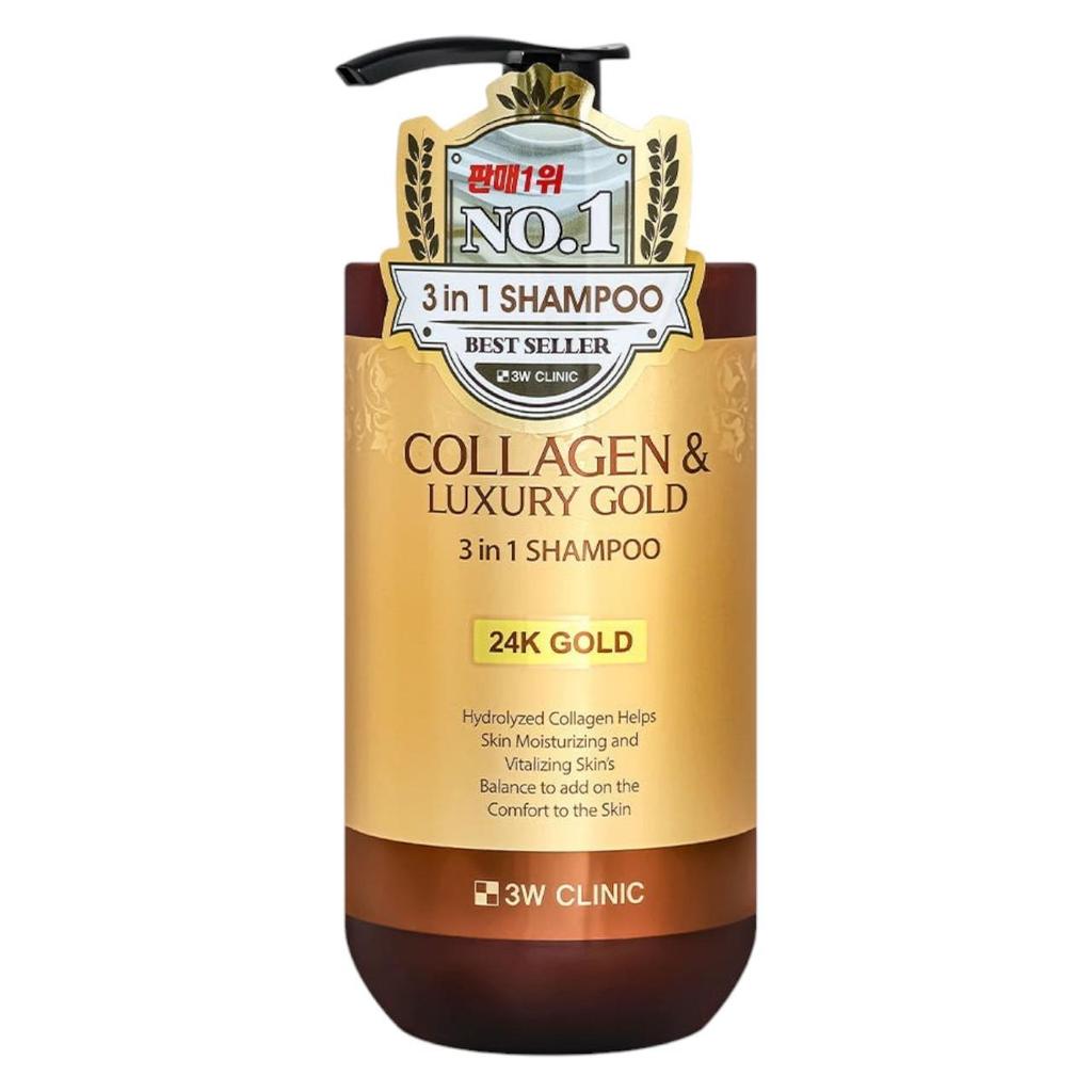 Simplify your hair care routine with the 3W Clinic Collagen & Luxury Gold 3-in-1 Shampoo. This multi-functional formula combines the power of a deep cleanser, hair treatment, and nourishment in one luxurious step. Enriched with Hydrolyzed Collagen and Gold, it effectively removes impurities while restoring essential moisture and elasticity to dry, damaged hair for a silky-smooth finish.