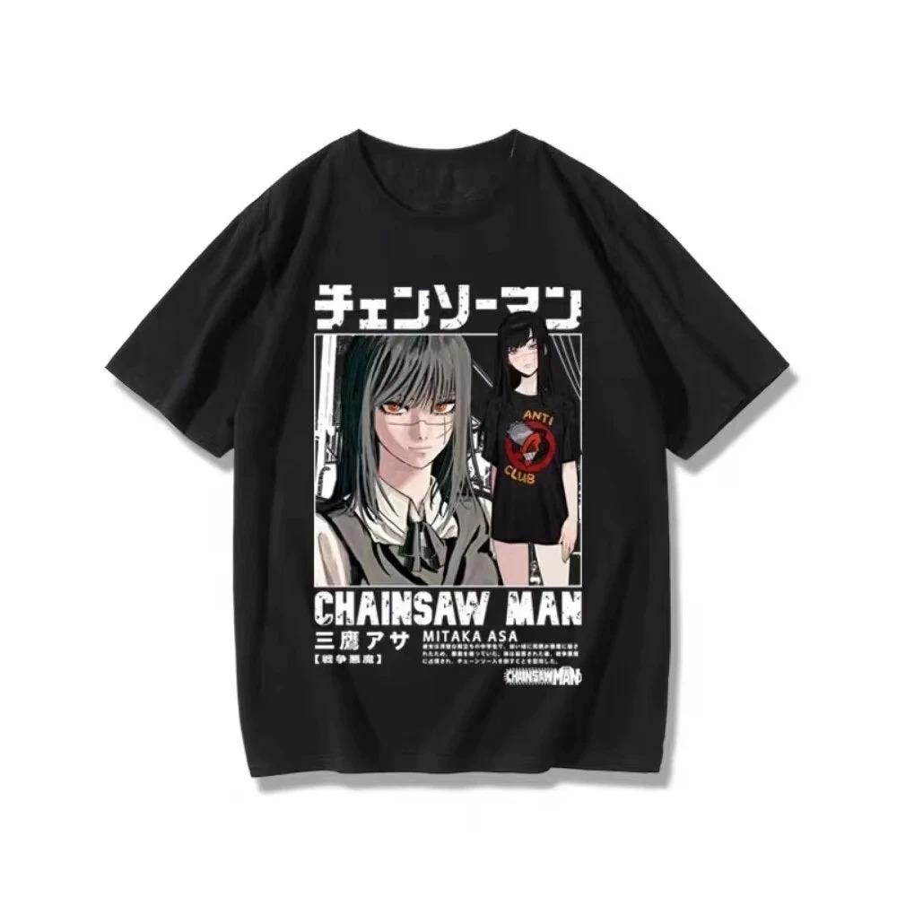 2026 Neues Chainsaw Man Mitaka Asa T-Shirt Anime Muster Baumwolle Kurzarm T-Shirt für Männer und Frauen Sommer Lässig Streetwear Y2k