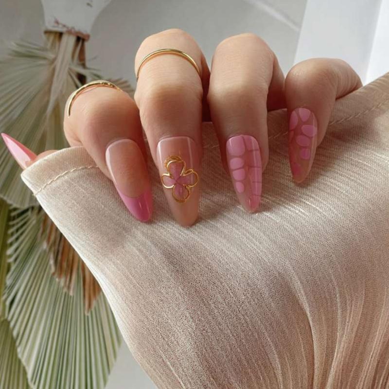 24 Pieces Medium Length Artificial Nail Almond Shape Press on Nail With 3D Floral Design Stick on Nail For Stylish Look