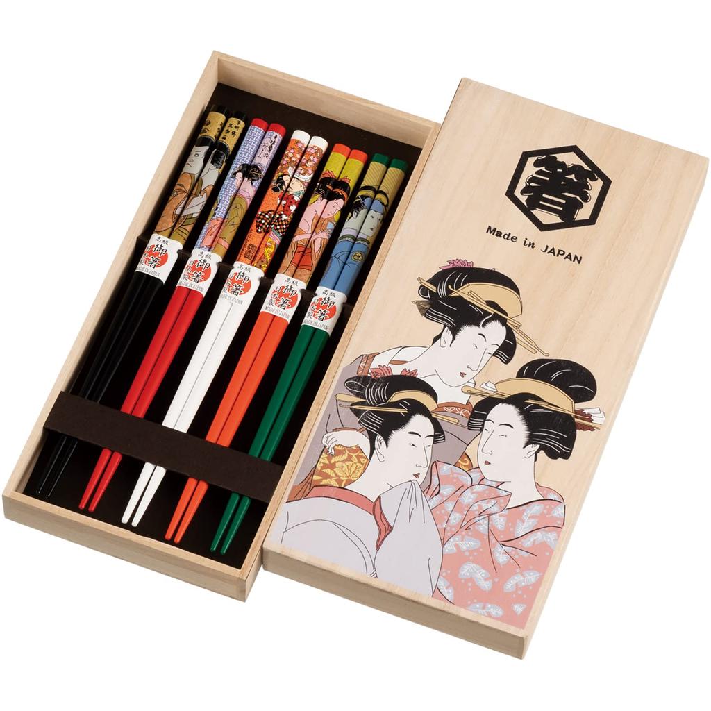 Wakasa Lack Natürliches Set als Geschenk Paulownia-Holzbox mit Schönheit Hergestellt in Produktnummer 265229 Essstäbchen, Holz, 22,5 cm, 5, Set, Ukiyo-e Gemälde,