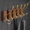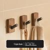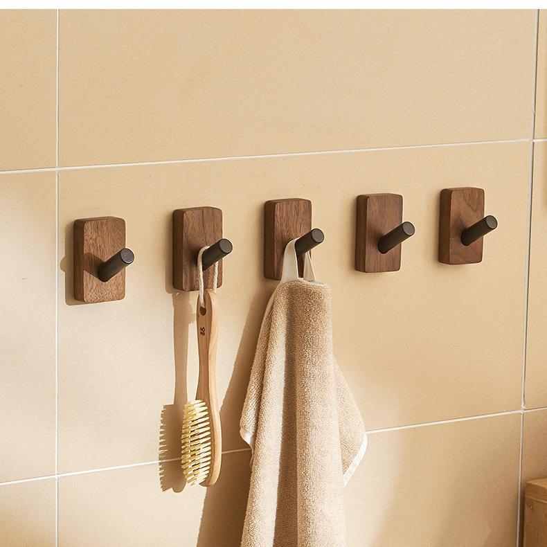 Walnut Bathroom Wall-Mounted No-Drill Adhesive Hook, Solid Wood & Space Aluminum