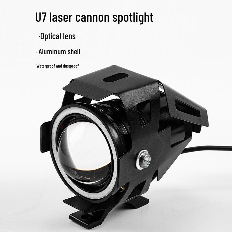 Universal U7 LED Motorcycle Spotlight with Super Bright Laser and Angel Eye Flashing Headlight