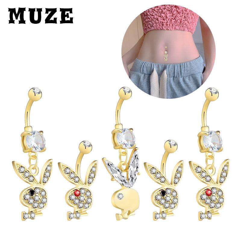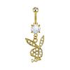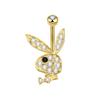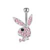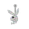Rhinestone Cartoon Rabbit Stainless Steel Navel Ring with Zirconia