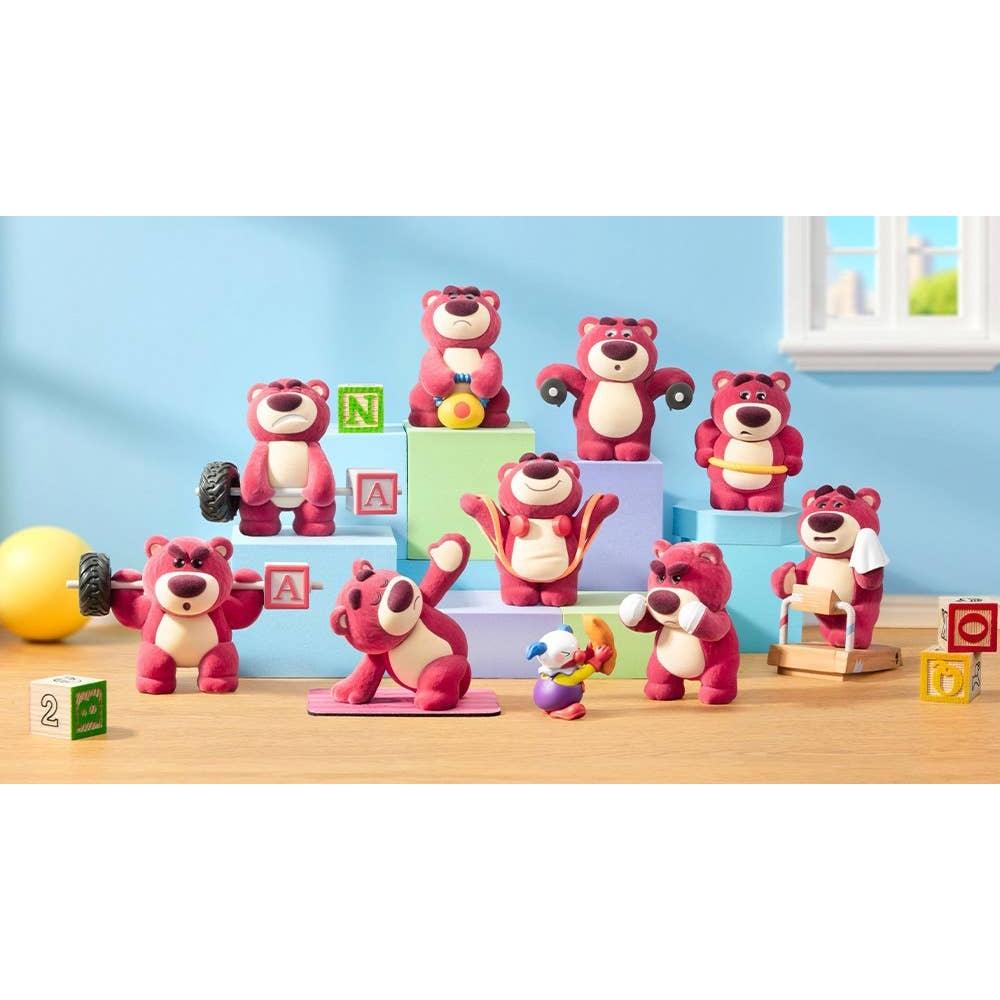 The Toy Story Blind Box Lotso Fitness Series features figures themed around the popular animation character Lotso. Each box contains a Lotso character, making it suitable for collectors and fans.