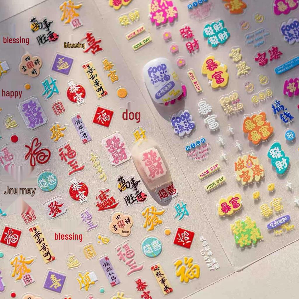 2026 Wealth & Luck 6D Embossed Mahjong New Year Nail Stickers